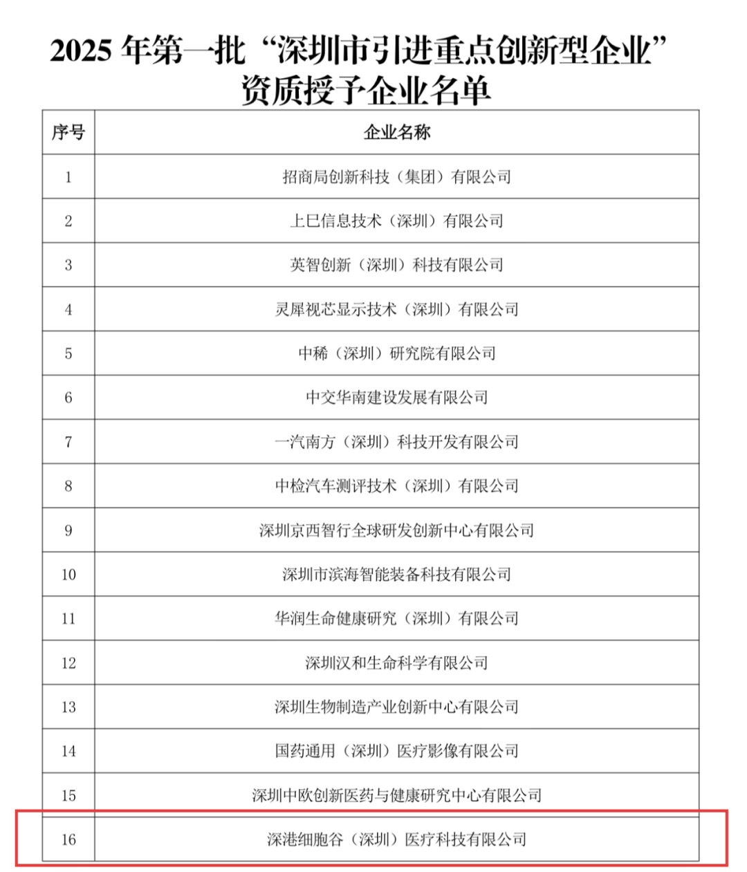 近期,深圳市科技创新局正式发布通知,授予深港K8凯发(中国)(深圳)医疗科技有限公司“深圳市引进重点创新型企业”资质,这一认定标志着企业在医疗科技领域的创新实力与开展潜力取得认可。此次资质授予名单共包含16家企业,深港K8凯发(中国)凭借在细胞治疗领域的前沿探索成功入选。