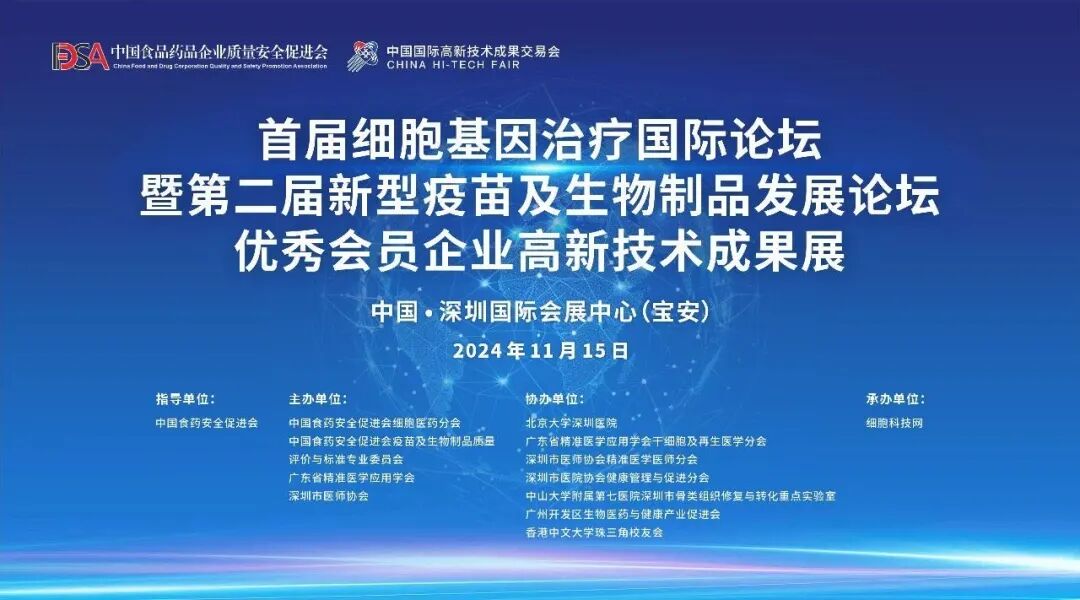 经中国食药安全促进会批准,由中国食药安全促进会细胞医药分会、中国食药安全促进会疫苗及生物制品质量评价与标准专业委员会、广东省精准医学应用学会、深圳市医师协会联合主办的“首届细胞基因治疗国际论坛暨第二届新型疫苗及生物制品开展论坛”及“优秀会员企业高新技术成果展”,首次作为生物医药板块进入“中国国际高新技术成果交易会”(高交会),将于11月14-16日在深圳国际会展中心(宝安)举行。(详情请见下方转载文章)