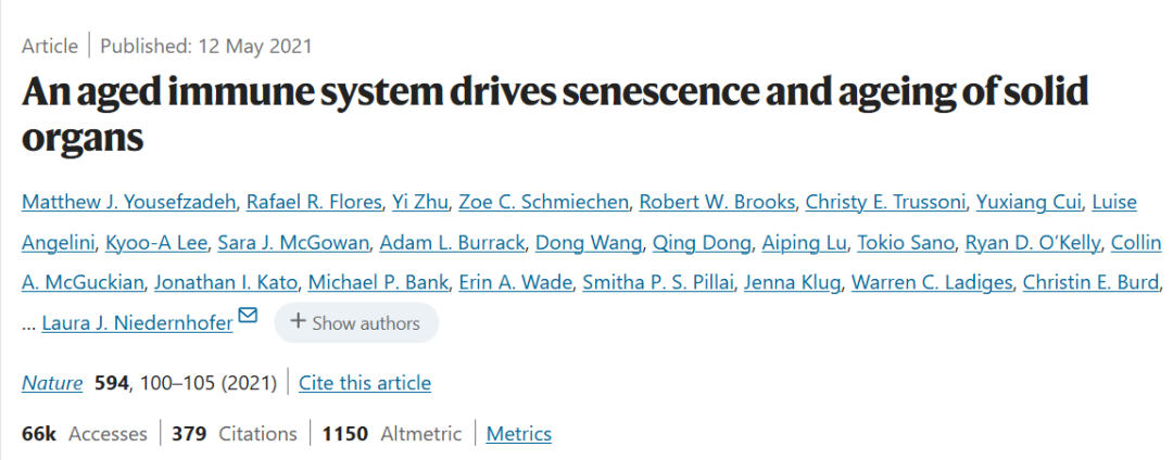 (图2 发布在《Nature》的文章:衰老的免疫系统会加速实体器官的衰老)